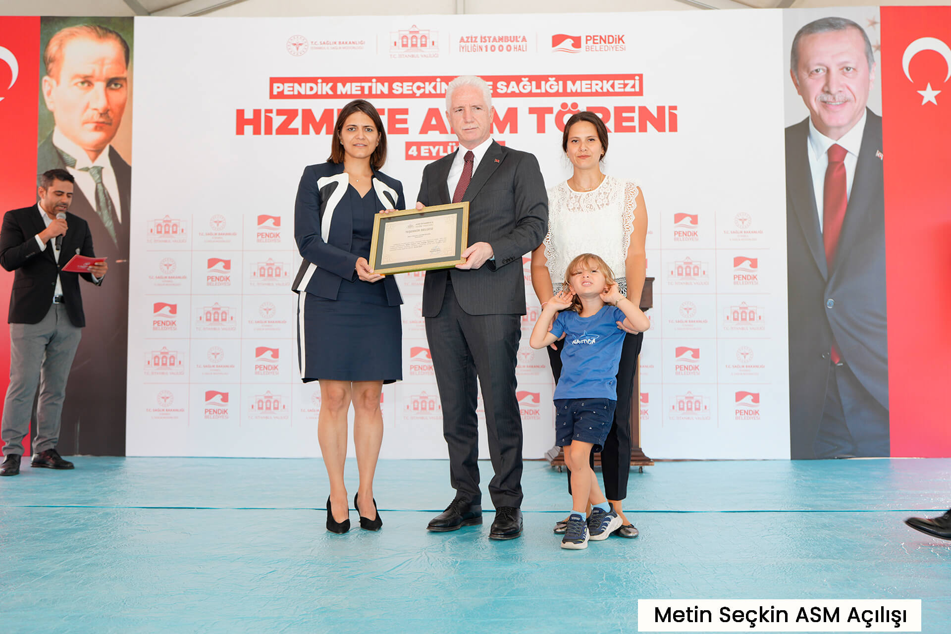 Hekim’in kızı Handan Hekim’in hayatını kaybeden merhum eşinin anısını yaşatmak için birlikte yaptırdıkları ve bağış yoluyla devlete kazandırdıkları Pendik Metin Seçkin Aile Sağlığı Merkezi düzenlenen törenle hizmete açıldı.
